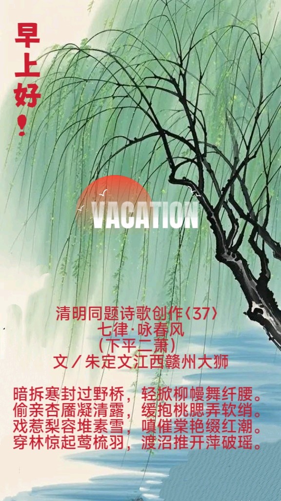 七言排律•咏春风(下平二萧),上部(1-8句),作者:朱定文/江西赣州大狮。【总编辑第28461期〈都市头条第80期〉认证编辑10991315朱定文】
