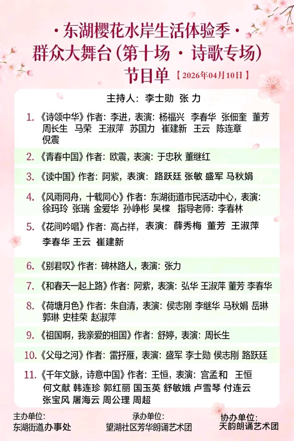 芳华朗诵艺术团 ‖ 东湖9樱花水岸生活体验季*群众大舞台(第十场、诗歌专场)
