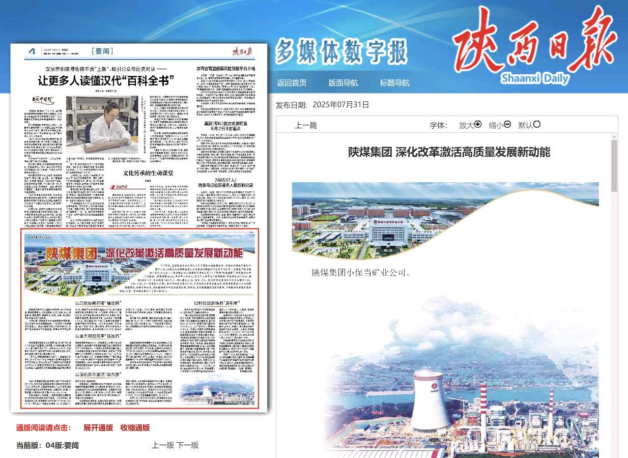 陕西日报 | 陕煤集团:深化改革激活高质量发展新动能