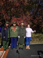 枫叶红重阳情老兵爱党永不停。2024.10.11老兵摄影在南湖。中国老兵事业发展网长春艺术团敬老演出献真情!