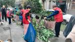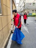 89岁业主带着86岁老伴参加卫生大扫除——银铃志愿者马甲映红南院门106号小区