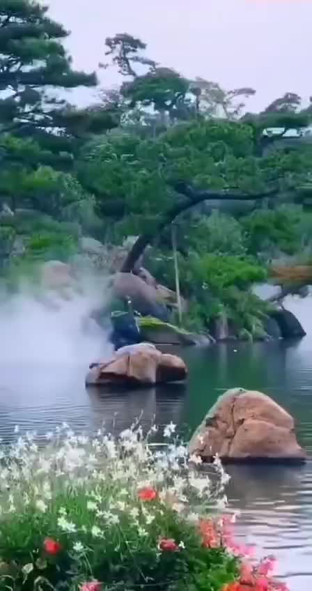 微风薄雾轻轻吹,宁静湖山荫郁青。