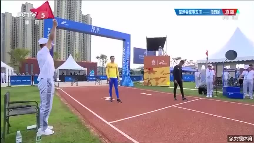 武汉军运会,为一位兵哥哥疯狂。10月20日的500米障碍跑项目,八一军事五项队队员: