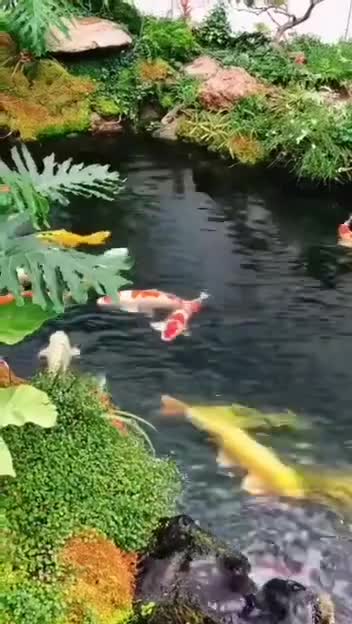 河中锦鲤疏闲游,石上天鹅观荷留。