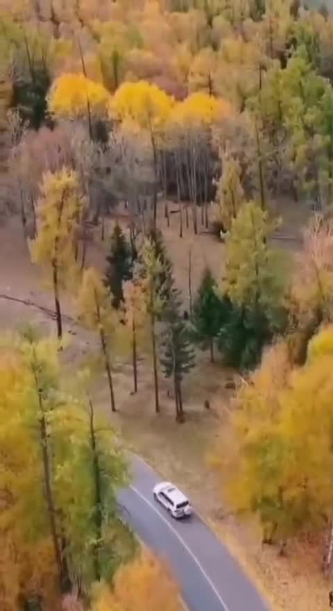 俯瞰青枝渐变状,满山尽染叶金黄。
