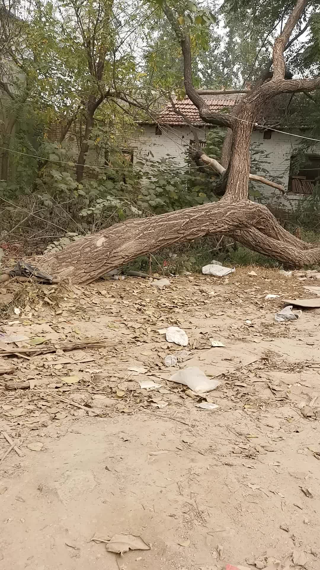 这棵逆势生长的树,从树的长势上看,己躺倒生长多年,但仍然不屈顽强,但由于这片村庄就要拆迁,但顽强仍改变不了厄运。特拍下视频,以此留念!