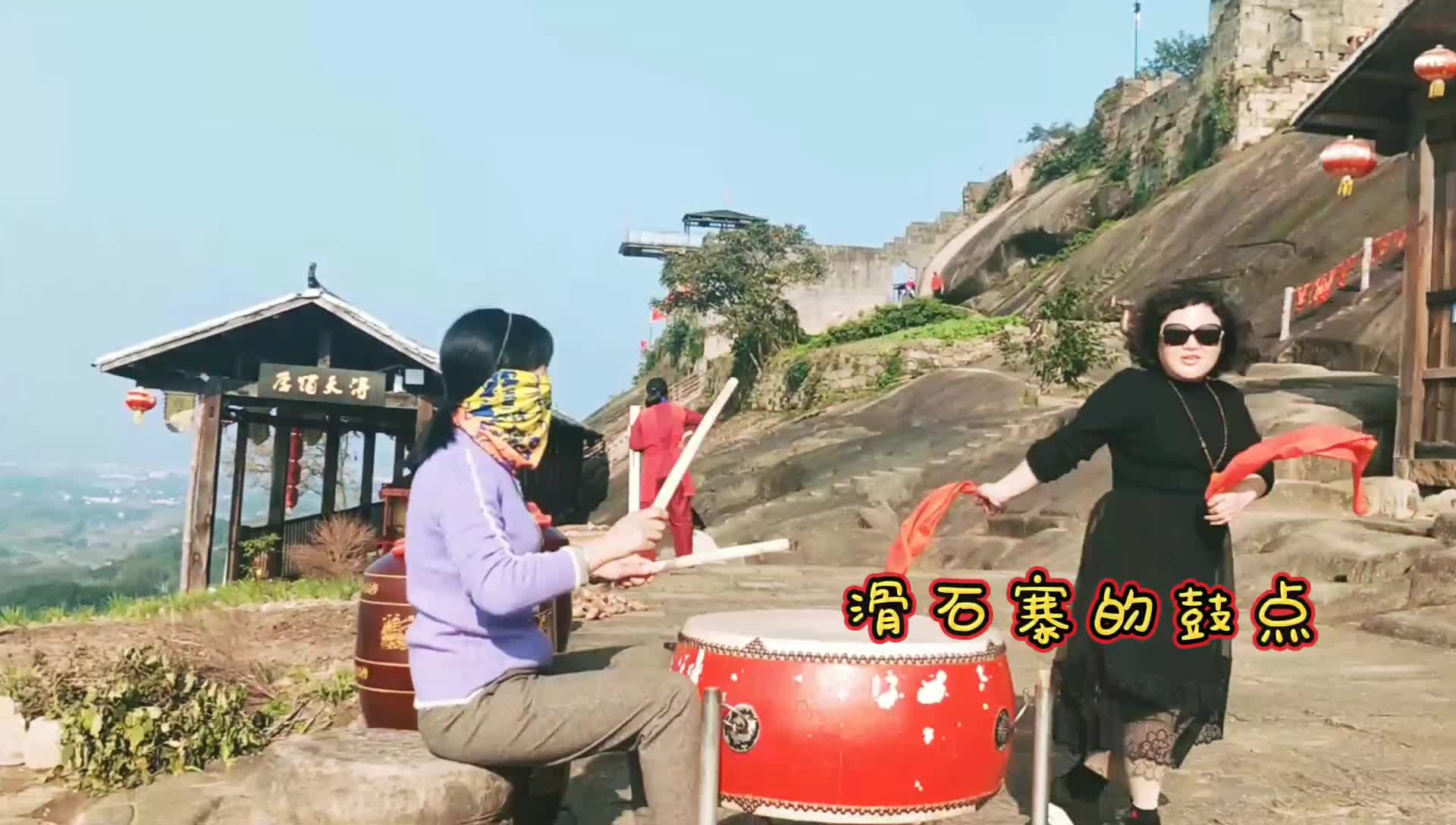 【笑傲消息】 时年11月10日,有水珠珠、战神等网络朋友随同,驱车游玩重庆梁平的滑石古寨。行至忠义堂,有美女水珠珠童鞋按捺不住放手擂鼓,有激情者遂起身应和翩翩起舞,感慨于此,用手机拍录以作留念。滑石古寨,真心不错!