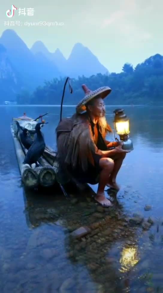 渔翁灯若如白昼,待等精灵进网兜。
