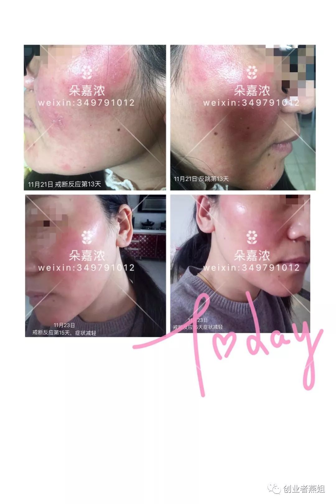 每每收到这样激素脸修复好转的信息,我都会激动万分,感觉即将把深陷皮肤问题的姐妹从黑暗的泥潭中拉出来。她的世界从此变美,我也是为自己积累了福报。