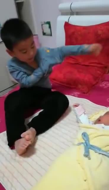 \ 四岁小哥哥唱歌哄满月小妹妹不哭 太精彩了