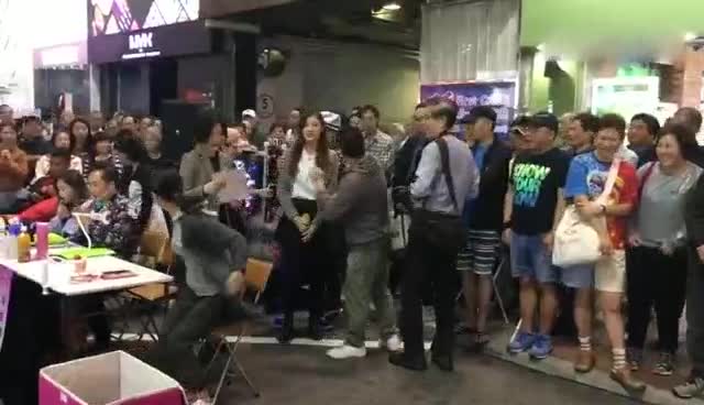 【女】拿话筒收红包,【人】群与女手拉手