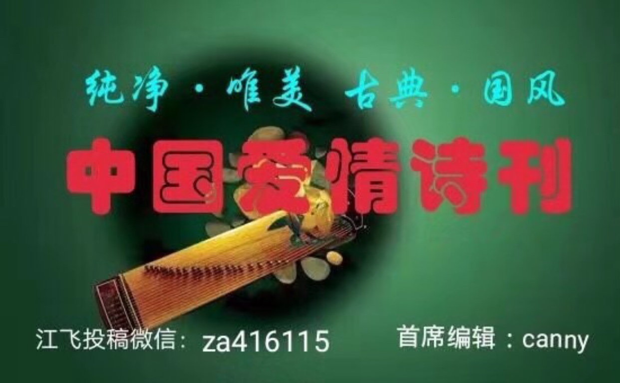 ➭【本期组稿、审核:宫翠珍。终审、选稿:江飞。头条首席编辑、制作:Canny。文化标识主题创意:江飞。制图:黎光耀影。美编:湖水微蓝、中国力量。《中国爱情诗刊》主编江飞投稿微信号:za416115;za9991314520(3首+照片+简介=“中国爱情诗人档案”个人专辑)。微信公众lD:za115416】✨ 《中国爱情诗刊》核心管理团队:总编:江飞。副总编:赵国俊。主编:一尘。执行主编:阳光。副主编:周长文,宇中俏,中国力量,依凝,Canny,那些年,寒流。推广部长:宇中俏。编辑部主任:风平。编辑部副主任:虞小巧,万年,林泉隐士,听潮,美错,冬至,随缘若水。《中国爱情诗刊》编委成员:江飞,那些年,宇中俏,风平,Canny,三月,林泉隐士,虞小巧(西班牙),依凝,张三,何絮风(台湾),美错,東方虹莲,水星,枫笛,随缘若水,万年,许梅(德国),饶蕾(美国),微风,阳阳,听潮,张相奎,沐雨夕烟,清风明月,周长文,赵国俊,阳光,冬至,汤淑兰(英国),王明超,因为有你,图拉罕.托乎提(新疆),禅儿,蝈蝈,程志强,佛缘人生,张淑雨,佰丽,秋忆,慧心,北方,白雪莲儿,执念,管庆江,冷月清辉,一尘不染,筱彧,杏花雨,绿波覆地,踏雪无痕,沙玛中华,清风明月,王健桦,呼啸,雯慧,吕艳。【创作理念:纯净,唯美,古典,国风。文化定位:权威,厚重,圆融,品位。】
