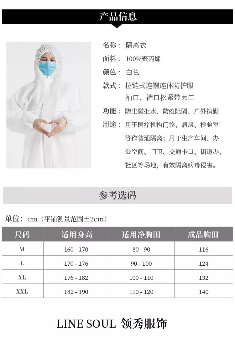 同时,领秀正在积极申报二类医疗器械医用防护服的生产资质,并与具备无菌车间的专业医疗器械生产机构快速达成合作,由领秀提供技术、设备与生产人员,目前医用防护服研发工作结束,预计很快将投入量产,继续为一线专业医疗人员提供的医用防护服。