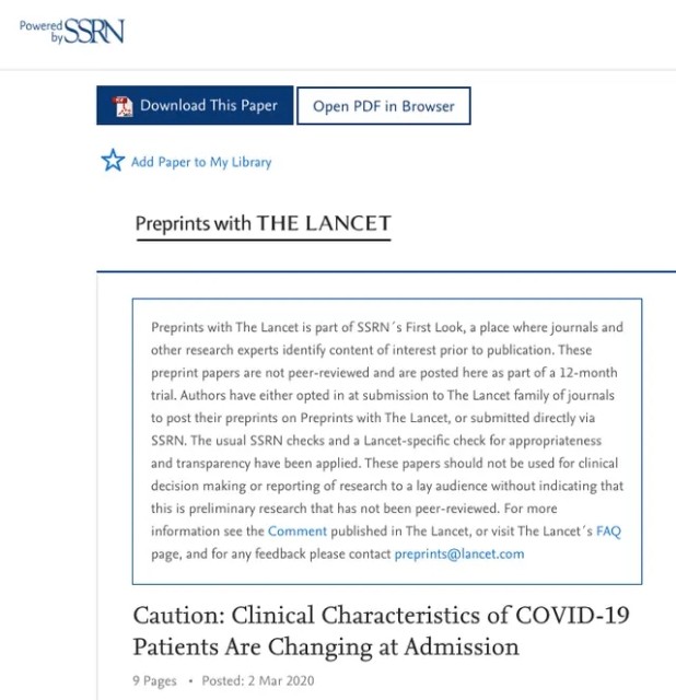 3月2日,武汉大学人民医院呼吸与危重症医学科副主任医师、副教授张旃在预印网站SSRN发表题为《注意:新冠肺炎患者入院临床特征正在改变》(Caution: clinical characteristics of COVID-19 patients are changing at admission)的论文,该论文称研究人员通过回顾性研究发现,患者在入院时的临床特征相比早期已经发生改变,总体来说便是临床特征更为隐蔽。这意味着新冠病毒可能逐步演变成类似流感这样的病毒,可能长时间潜藏在无症状者体内。