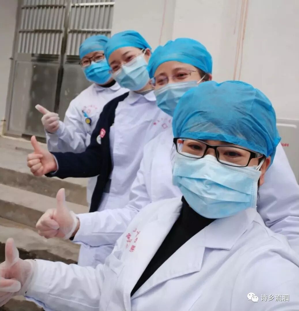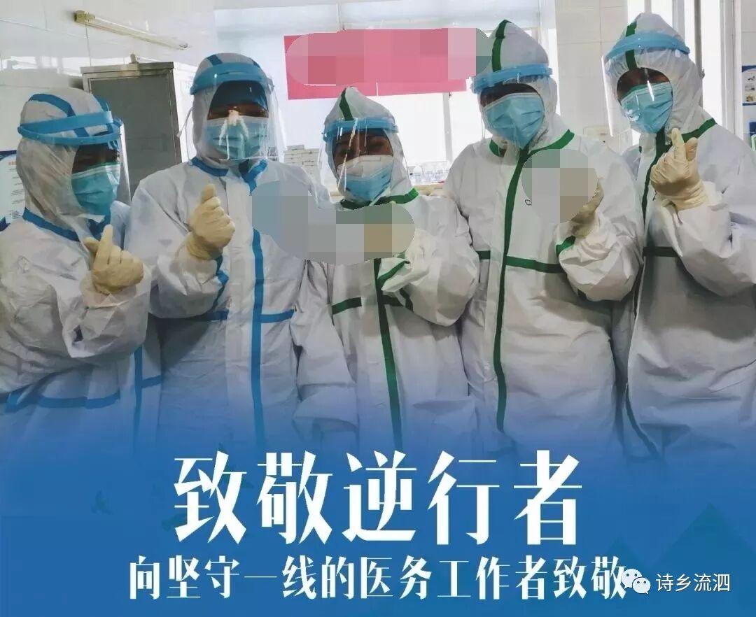 最感白衣天使,奋身战斗前沿。愁痕累累罩痕添。丹心赴国难,哪顾小家圆。