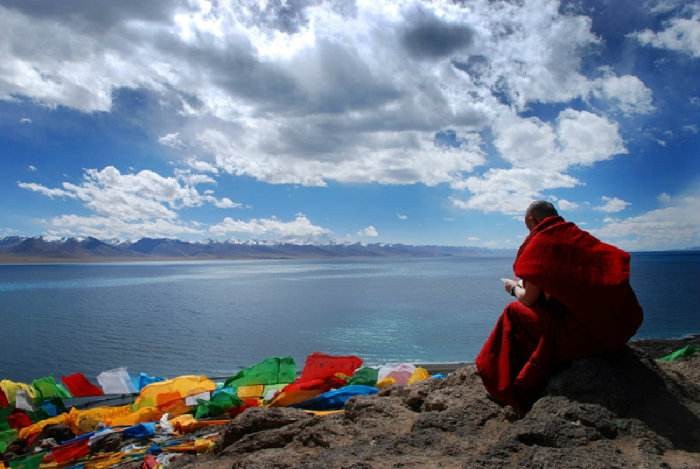 用青海湖挂起的经幡给你们祈福