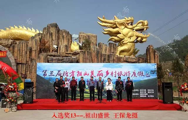 走过那段不平的深沟土路,大家坐进汽车,在曲折的山路上颠簸行进约二里路,在一个大栅栏门前停下。绕过栅栏,徒步上山。一路上,整饬的非常整齐的地、又矮又壮的果树、迎风摇曳的各色的花,不时地出现,欢迎着我们的到来。一帮人文绉绉的,不停地打趣,话里或是弦外之音,或是无敌意的挑衅,都是一种朋友间没有距离的、亲密无间的对话。笑声不断地响起,在山间回荡,爽朗而干净,让人可以彻底地放松,无需戒备,没有抵触,一切随心所欲、顺乎自然。说话间,各种鸟儿、山鸡和一些不知名的山虫也像是来凑热闹,和我们玩起藏猫咪来。刚一露个影儿,还没等你看清楚,“扑棱”一声、“刷啦”一下,就又消失得没了踪影。或是,你正为它长长的尾巴、黑白相间的羽毛而赞叹,要接近它,给它拍个特写,它却小心得要命,害羞得“啁啾”一声,飞出了你的镜头、视线,着实把你忽悠一把,不免会让人的兴致出现一个从高到低的落差。唉,这些大自然的精灵啊!到了一个叉路口,几个民工正在左手边修葺一个亭轩。热心的民工示意我们顺着绑有红布条的树走。抬眼望去,果真看到一溜树上绑着红色布条。后来听看庙的说,石鼓寺一年有两次庙会,农历的三月三和六月十二。我们看到的红布条就是三月三庙会时,善男信女们上山时虔诚地系在树上的,说是代表吉祥喜庆,能避邪。传说祭祀等活动绑红布条是为了驱赶在树上的妖怪“年”。不管怎么说,这红色是那么的神采飞扬,妆点得整个的山野都焕发着容光。
