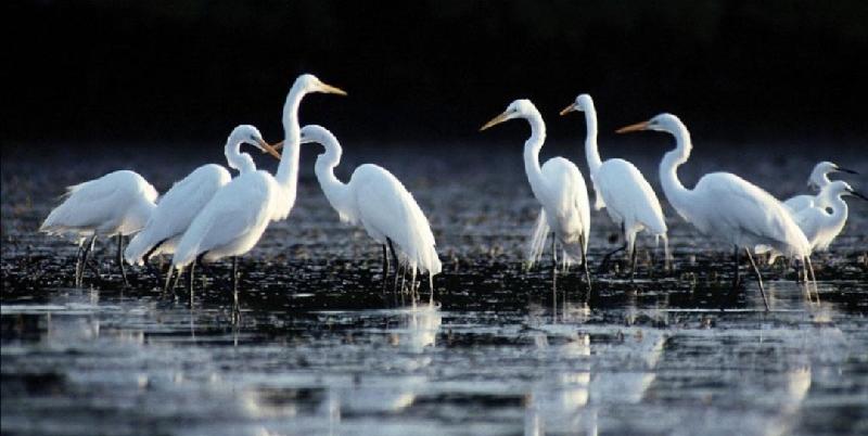 一对天鹅在月光下的湖里