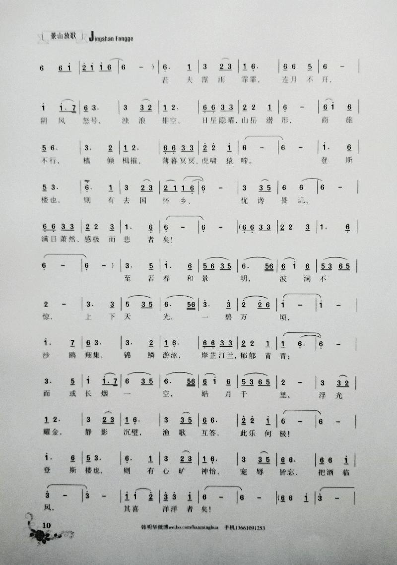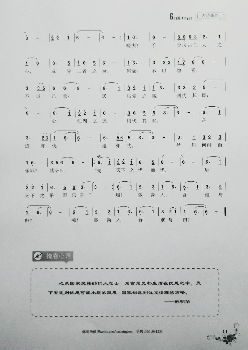 二〇〇六年,韩明华将《岳阳楼记》谱曲,演唱,史无前例。
