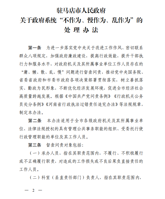 \ 驻马店市人民政府发布重要通知!事关不作为、慢作为、乱作为……