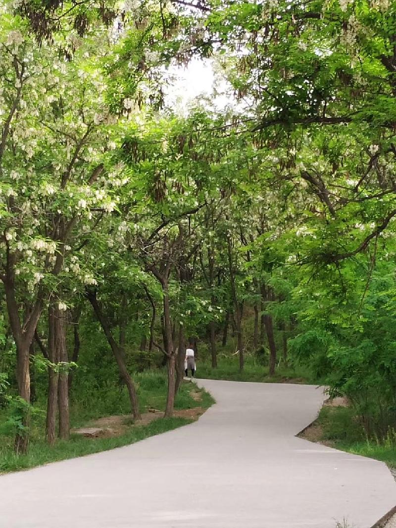 墨城近郊马山,是五月里休闲的好地方。每到此季走近山北坡,飘来一阵淡淡的清香,越往上坡走,树林渐渐变得密密麻麻,如初雪的花挂满枝头,一眼望去,树上槐花一片片白茫茫。