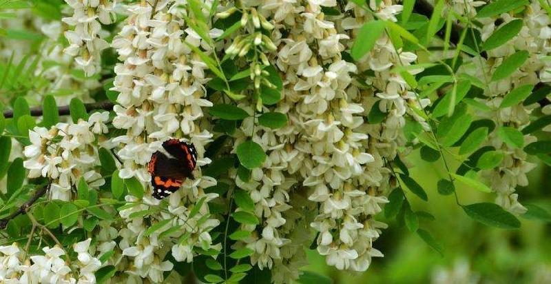 洋槐花以乳白色为基调,未开的花荚果象一盏盞小灯笼,随着微风轻盈摇晃,盛开的槐花,宛若一只只白蝴蝶竖排成行,乖巧的让你喜悦,泪水盈满眼眶。