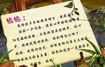 谢谢您赐给了我生命,是您教会了我做人的道理,无论将来怎么样,我永远爱您!在这属于您的节日里,祝您节日快乐,永远快乐!