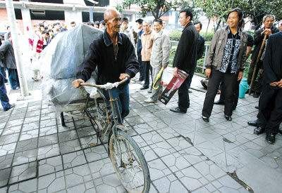 老人来自山东沂蒙老区,六十花甲,显的比同龄人要老很多。他说他来杭州快十年了,杭州是个好地方,前几年他一年除去吃喝能省下二万块钱,今年经济不好,物价又上涨,估计只能省下一万块钱了。他一年的收入其实不够权贵们一晚上多开瓶好酒,但他觉得还是挺满意的,因为他告诉我这个数字时是很满足的微笑。老人说今天 一天还没接到过生意,现在市场又快下班了,如果再接不到,今天一天的生活费将没有着落了。我明白他的意思,但他的车确实装不下我的货,他表示可以再叫一辆,只是我还得再付一笔运费。看着这位和我爸差不多岁数的朴实老汉,我真的很同情,虽然爸爸这辈子吃过不少苦,但至少早在花甲之前就不用为生计奔波。所以我答应了他让他帮我送货。