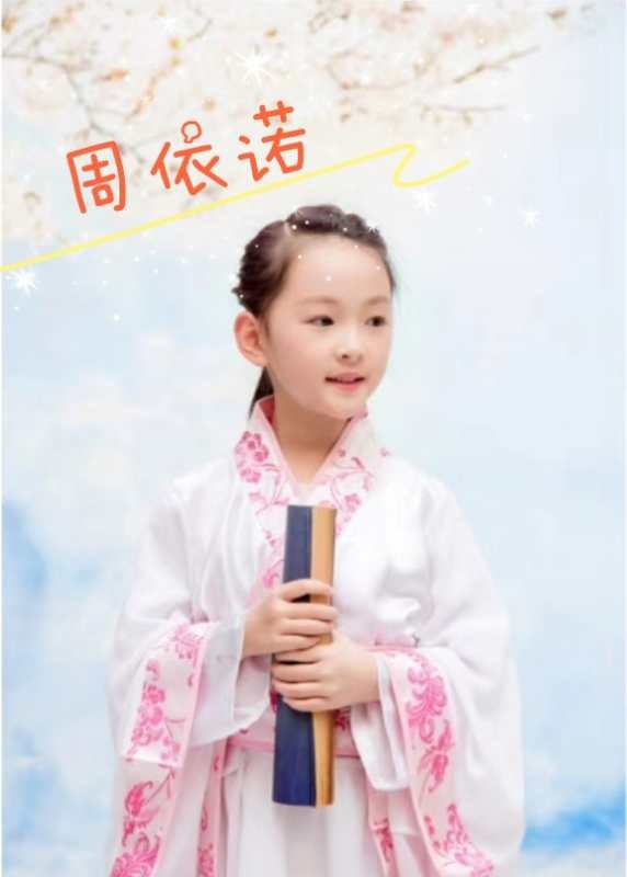 周依诺,(8岁)黄石市中英文小学二年级学生,孙老师亲子训练营优秀学员。活泼开朗,喜欢舞蹈,画画,朗读,手工,听故事;曾获学校年级朗读比赛一等奖。