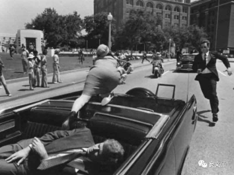 当时电视直播有个镜头,第一夫人杰奎琳爬上汽车后备箱,伸手抓住了肯尼迪被子弹射飞出去的头盖骨。