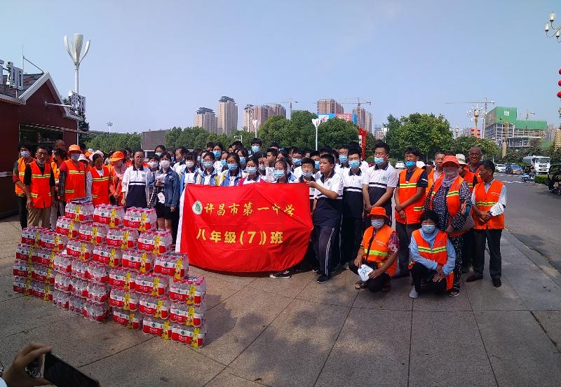 参观档案馆学习结束,按照事先约定,参加爱心送水活动的学生直接到下一站:许都广场。这个是班级家委会孙若淇妈妈个人特别为学生们联系组织的一次爱心传递活动,活动主题是给“环卫工人爱心送水”。家务会已经事先说明这个是属于班级自己组织的小范围活动,孙若淇家长说“学生自愿报名,送水费用,根据报名人数平摊,咱自愿报名。”