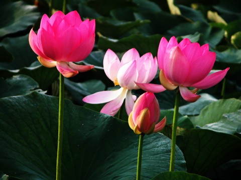 北朝阳,南朝阳,四处来宾容焕光;静莲芳满廊。