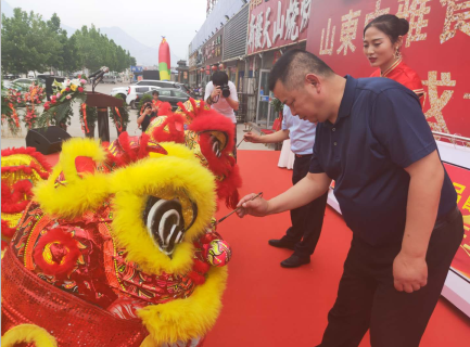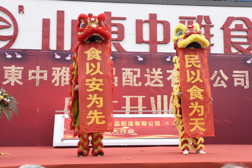 在现场热烈的气氛中山东中雅食品配送有限公司黄丽忠、泰安市烹饪协会会长訾胜军、泰山基金小镇董事长夏荣法、泰安市旭东园林董事长杨晓东、泰安市福润达汽车配件有限公司总经理关忠、中国企航泰安分公司总经理王庆国共同推动启动杆,宣布山东中雅食品配送有限公司正式开业!随后进行舞狮点睛表演,展现了“民以食为天,食以安为先”两行大字,将现场气氛推向高潮!
