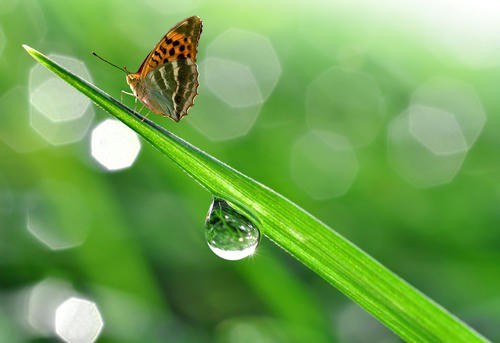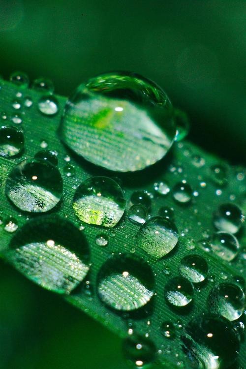 挂在叶尖如宝珠,晶莹透亮把霞储,