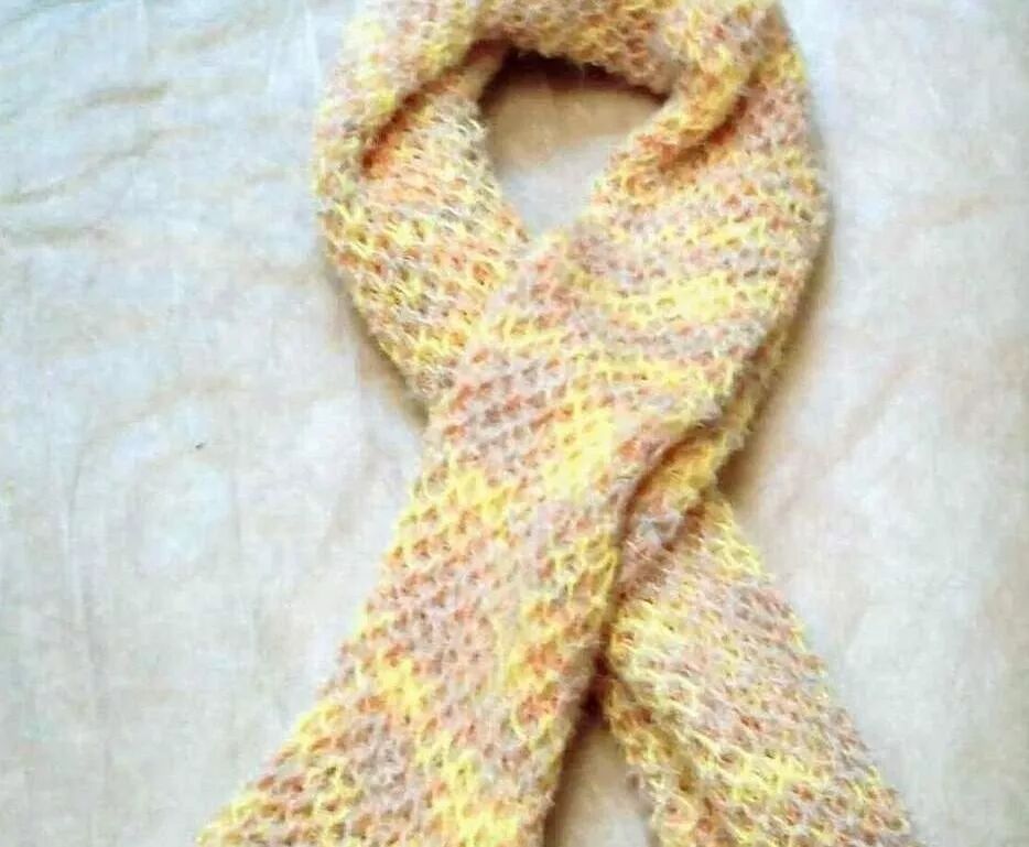 这围巾米黄色,一米半长,约一尺宽,两头结了多条疙瘩穗。女儿说看她同学用竹签子织毛衣,就想学着给妈妈织个围巾,顶风冒雪的妈妈上下班就不冷了。同学也很热情,答应教她并和她一起去买毛线和竹签子,晚饭后息灯前教她织毛线。开始手忙脚乱,经常掉了线球,织错上下针,松紧不均,不小心竹签子扎手指头,感到自己很笨。由于同学耐心教,女儿虚心学,渐渐掌握了上下针穿插,松紧,回转,编织熟练起来,想到尽快让妈妈围上围巾取暧,別人都睡了还偷偷忙活。终于十来天围巾织成了,从那针角上很能看出女儿的苦功,由松垮到均实显示了一个初学者细心和耐力。虽然毛线质量不佳,但是围巾很美观,,围脖子上既柔软又漂亮。想想女儿为我取暖在紧张学习之余放弃娱乐,费心熬夜给我织条围巾,非常感动,才十几岁的孩子,就有这么善良感恩的心,就对我这么体贴疼爱,我是多么幸福欣慰呵。