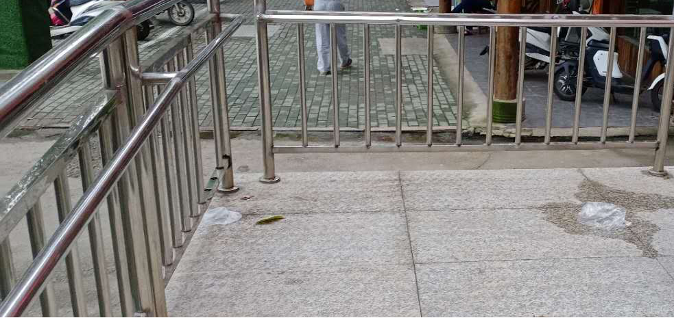 无障碍通道上有垃圾;无社会主义核心价值观公益广告宣传