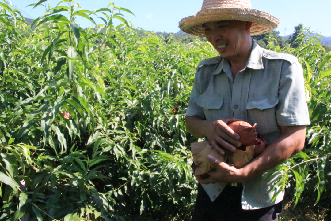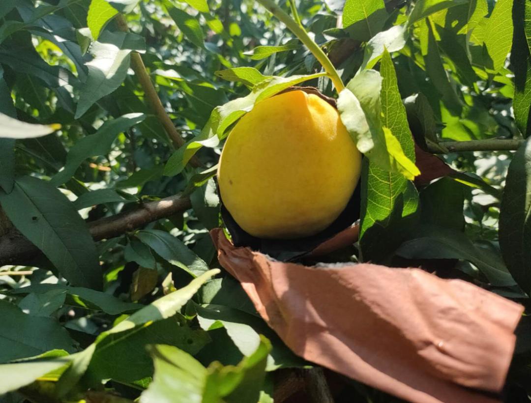 谢百艳丈夫谈及黄桃种植,如数家珍,从修剪,培植,行距,施用农家肥,理论和实践一套一套的。他说,大的锦绣黄桃可以重到6--8两,成熟期的黄桃不论个大个小,重量也基本一致,只甜度有点不同,所以在一周左右的采摘高峰期,要尝新鲜黄桃,正是好时节。