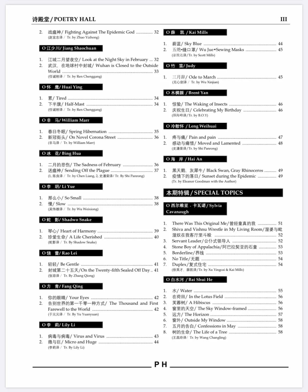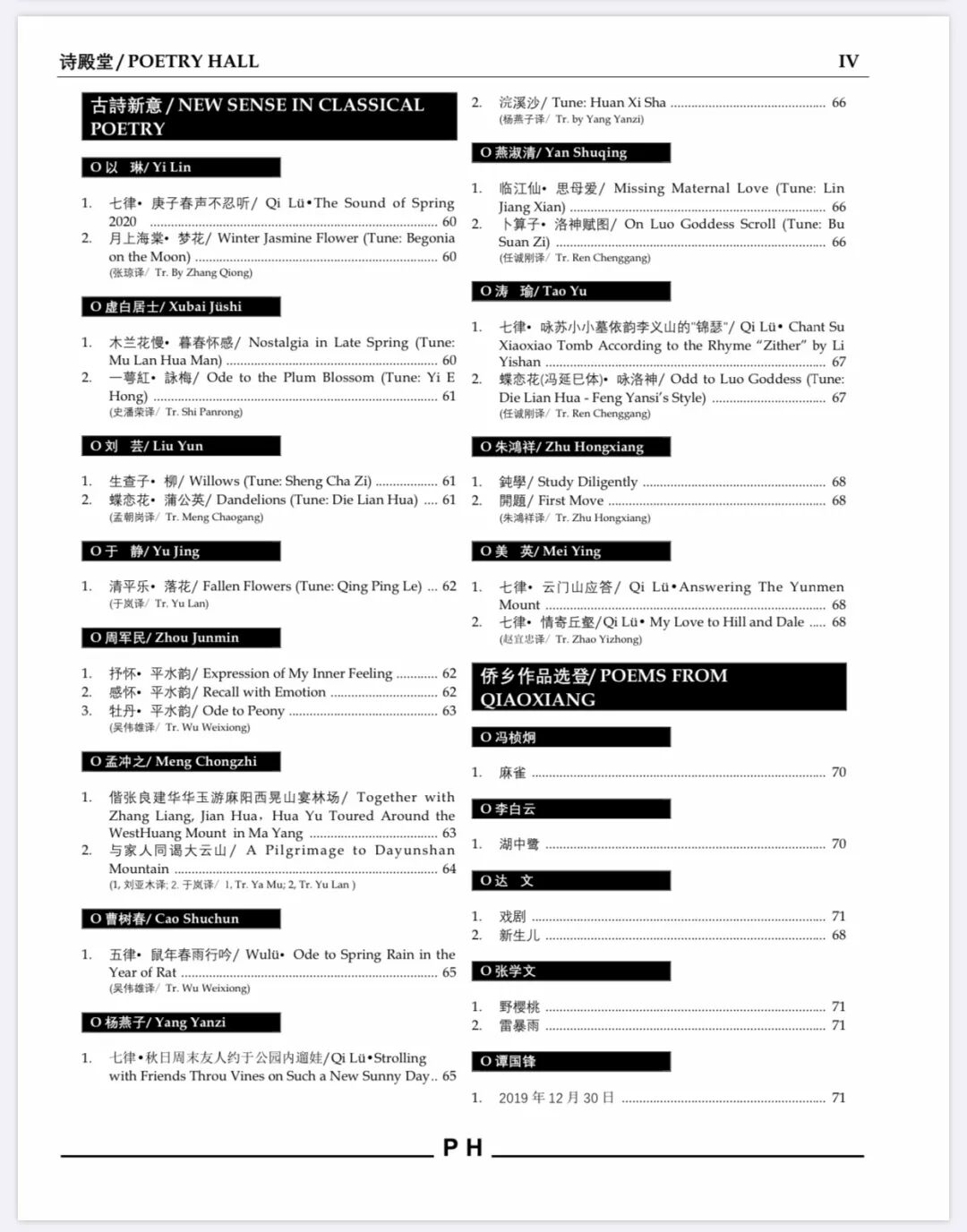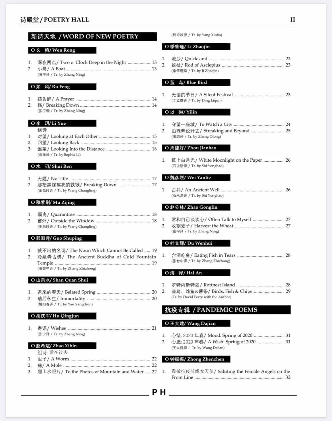 汉英双语诗刊《诗殿堂》第八期 目录