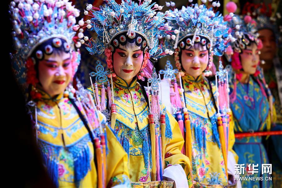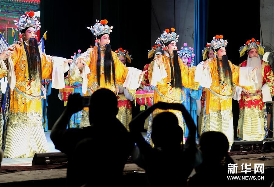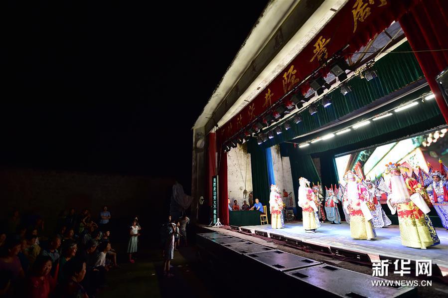 8月5日,河北省井陉晋剧院在石家庄市井陉县上安镇头泉村举行了2020年“暑期戏曲惠民生”首场下乡展演活动。此次惠民展演将在石家庄市西部山区农村上演60余场次,给山区群众带来《杨业归宋》等经典戏曲剧目。近年来,河北省石家庄市井陉县通过开展国家级非物质文化遗产项目——井陉晋剧进山村、进校园、进社区等送戏惠民活动,有力促进非遗文化发展,让更多人了解传统戏曲文化。新华社发(张晓峰 摄)
