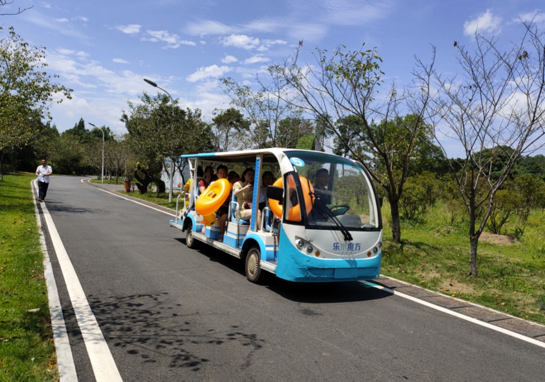 在“绿水青山就是金山银山”的巨大横幅下,是一百亩色彩斑斓的杜鹃花基地,虽然现在只看到一排排矮矮茶树模样的树株,但可以想象,暮春之初,惠风和畅之时,白色、黄色、紫色色彩缤纷、争奇斗艳,蜂飞蝶舞、游人如织的盛况,一声声惊叹,一道道闪光灯,让园林到处流光溢彩,春意盎然;淫雨霏霏之时,上有“赤橙黄绿青蓝紫,谁持彩练当空舞”,下有“红雨随心翻作浪,青山着意化为桥”的美景;月光如水的夜晚,肯定是清风明月和穿着五彩霓裳的杜鹃仙子释放自我,高山流水遇知音的绝佳境界,原来大家都只对映山红的红色情有独钟,却直到今天才恍然大悟;同样是竹子,修长的密林是粉单竹,而辫子一样在风中摇曳生姿的小竹,则是凤尾竹,如果在水边,更能体会“龙吟细细、凤尾森森”的意境;水边的像竹叶一样的再力草,还有一直攀缘到参天大树顶端的凉粉果藤蔓,树干上同时有“少年绿”和“中年绿”,我们仔细听、情不自禁地触摸,又忆起童年时,在靳尚故居的残垣断壁上,也曾长了许多如此这般的东西;杉树,到底是水杉还是池杉?池杉就在水中,根部大,根系发达,所以即使在深水中也能自由地呼吸、伟岸地生长……大家都感叹萧总真是一个专家型的领导,也感叹大自然的神奇。