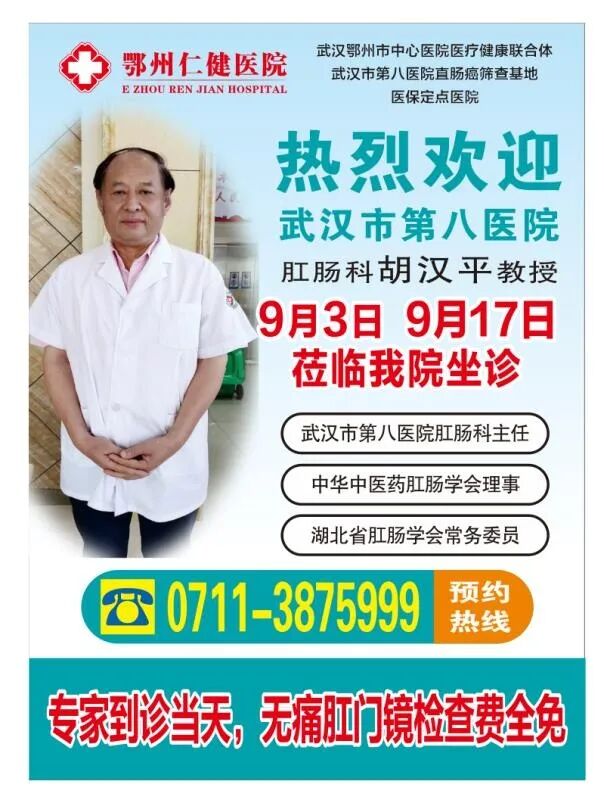 据悉,9月3日,武汉市第八医院(肛肠医院)肛肠科胡汉平教授、主任医师已经亲赴仁健医院坐诊,为广大患者答疑解惑,赢得了患者和家属的好评。9月17日,胡汉平医师还将再次坐诊。