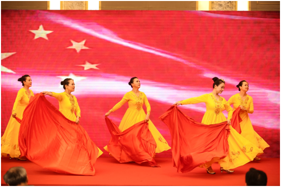 ▲东方军乐传媒舞蹈团在表彰大会上公益演出舞蹈《五星红旗》(图/张宾)“谱写大地华章,讴歌时代英才”。中华大地之光征文评选活动,将继续在历史的征程中,阔步前进,闪现光辉。
