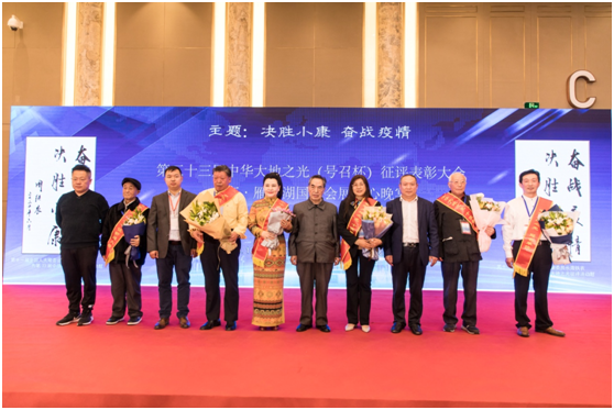 在雁栖湖国际会展中心举行的中华大地之光征评表彰大会上晚宴上,中华大地之光“十佳新闻人物”, 接受了组委会的献花,发表了获奖感言。