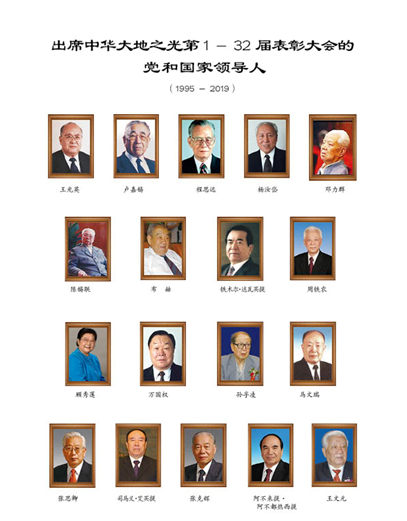 ▲出席中华大地之光1—32届表彰大会的党和国家领导人