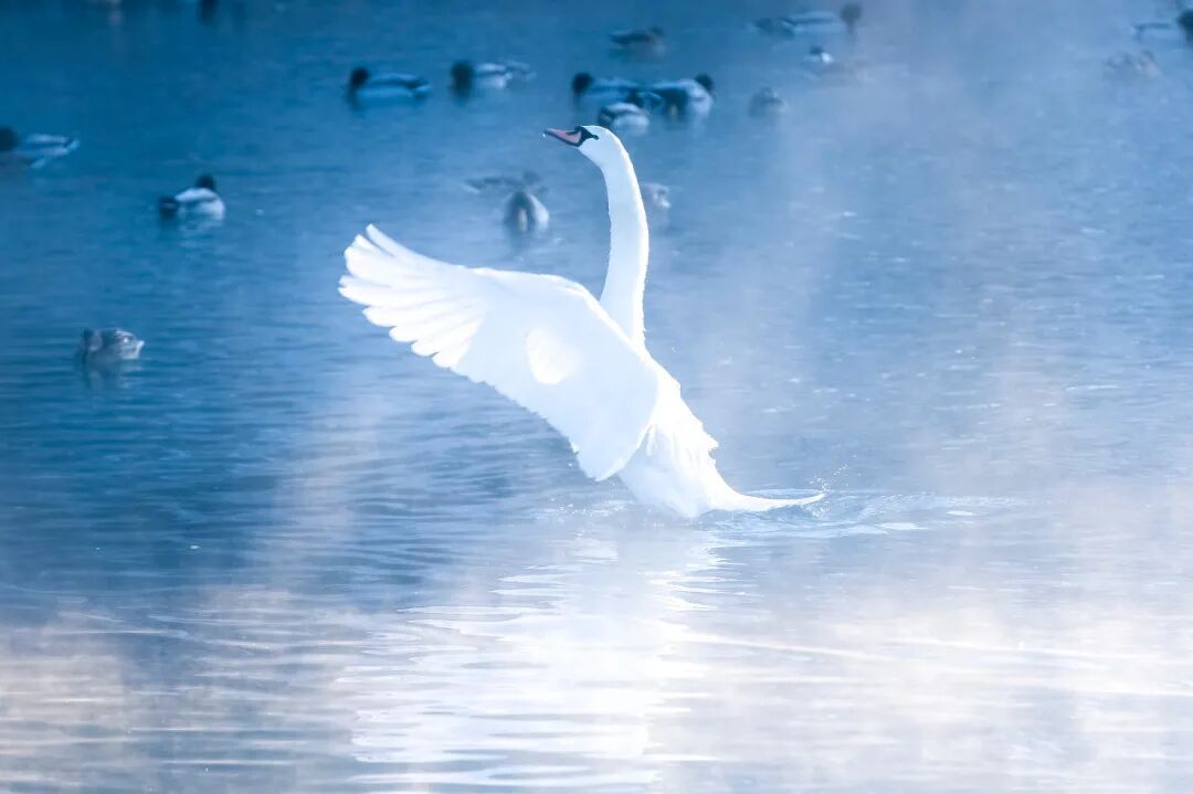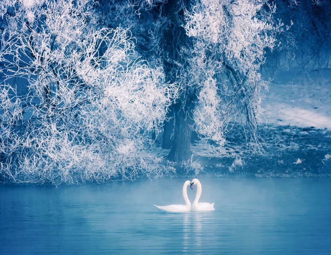 洁白的天鹅和这冰雪琉璃世界融为一体,造就了冰雪奇缘的唯美世界。