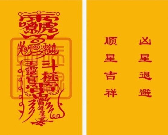2、躲星时要把门窗挡严,不能有一点光亮,面向躲星的方向静坐,或烧三支香,放在桌子最前方,用扎有红布的木(或金属)斧子,压上一道顺星符或平安符,放在香的后面。(顺星时见到光亮或星星光亮最好),可点合适的红蜡烛等。切记躲星一定忌一切光亮不点蜡烛。包括水渴了吃水果。