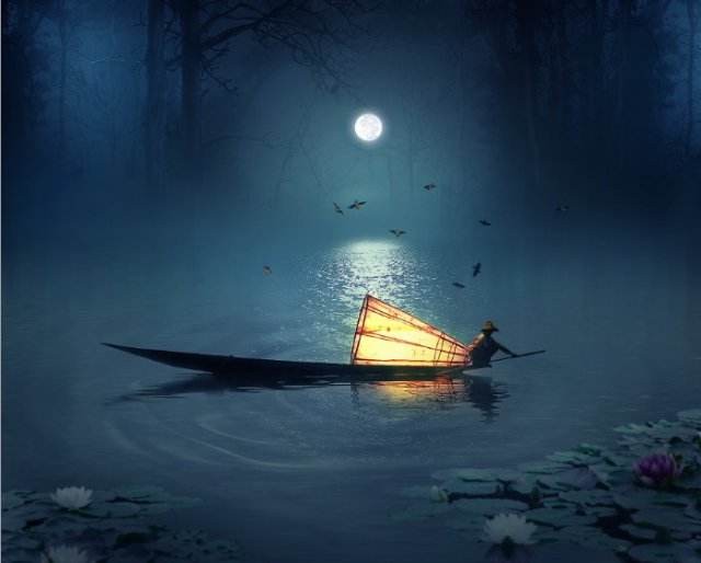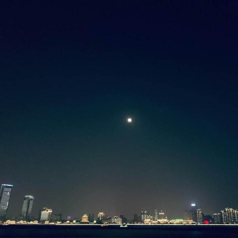 天空十五月圆光,无数星星喜伴航。