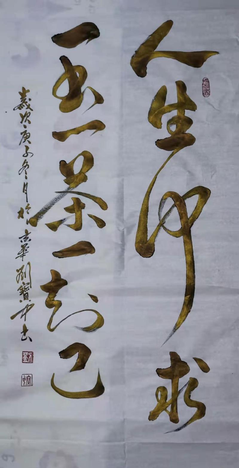 老来好书爱发狂,手捻宣纸驯狼羊。