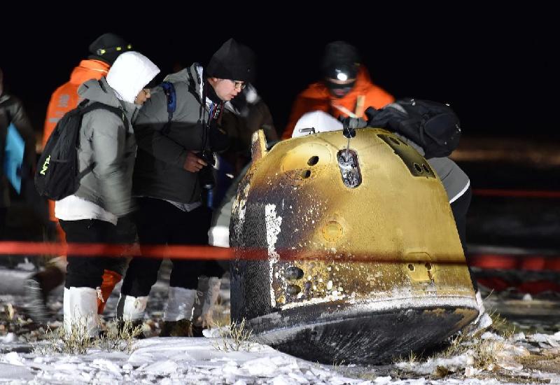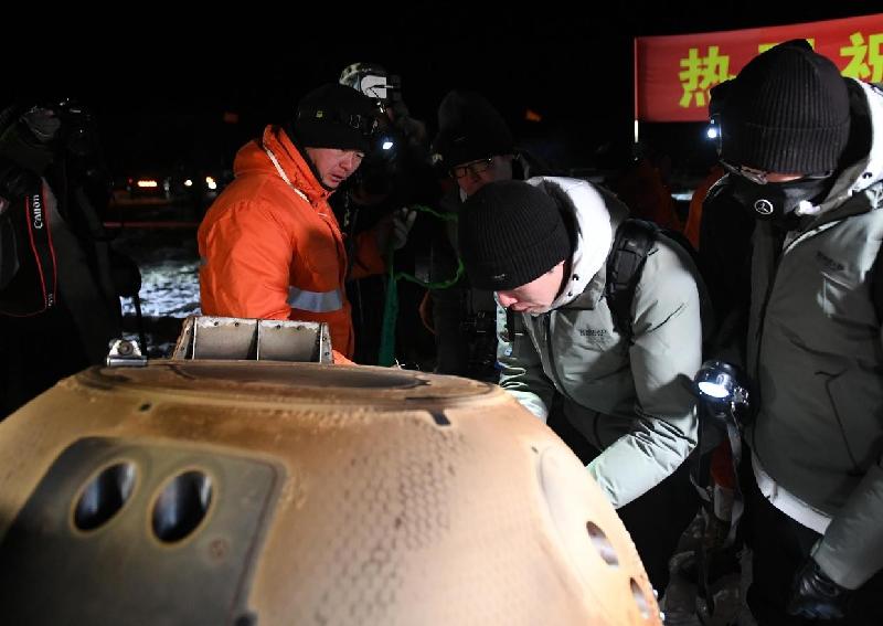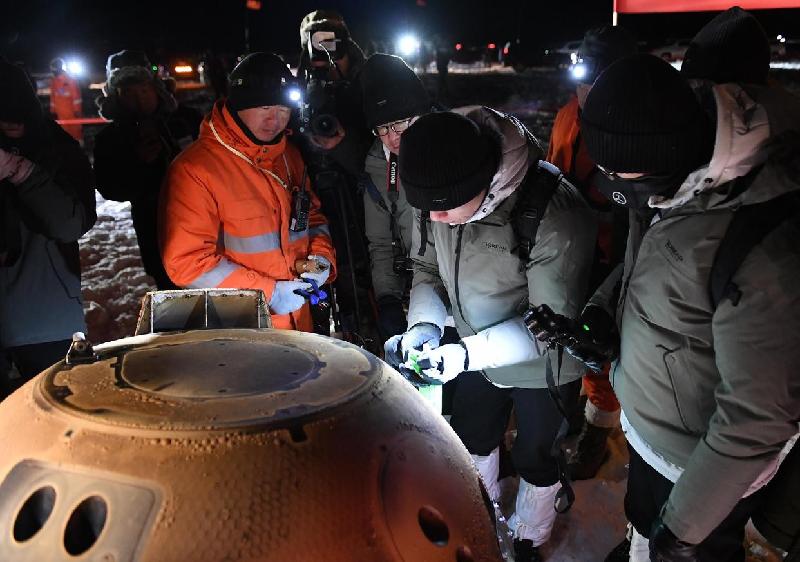 【诗序】2020年11月24日,中国用长征五号遥五运载火箭成功发射嫦娥五号探测器,并将其送入预定轨道。11月24日,嫦娥五号完成第一次轨道修正。11月25日,嫦娥五号完成第二次轨道修正。11月28日,嫦娥五号进入环月轨道飞行。11月29日,嫦娥五号从椭圆环月轨道变为近圆形环月轨道。11月30日,嫦娥五号合体分离。12月1日,嫦娥五号在月球正面预选着陆区着陆。12月2日,嫦娥五号着陆器和上升器组合体完成了月球钻取采样及封装。12月2日,嫦娥五号完成月面自动采样封装。12月3日,嫦娥五号上升器将携带样品的上升器送入到预定环月轨道。12月6日,嫦娥五号上升器与轨道器和返回器组合体交会对接,并将样品容器转移至返回器中。12月6日12时35分,嫦娥五号轨道器和返回器组合体与上升器分离,进入环月等待阶段,准备择机返回地球。12月8日,嫦娥五号上升器受控离轨降落在预定落点。12月12日,嫦娥五号轨道器和返回器组合体实施第一次月地转移入射。12月16日,嫦娥五号探测器顺利完成第二次月地转移轨道修正。12月17日凌晨,嫦娥五号返回器携带月球样品着陆地球。2020年12月17日1时59分,中国嫦娥五号,经过23天的太空之旅后,返回器携带2千克月球样品,在内蒙古四子王旗预定区域安全着陆,探月工程“嫦娥五号”任务取得圆满成功。