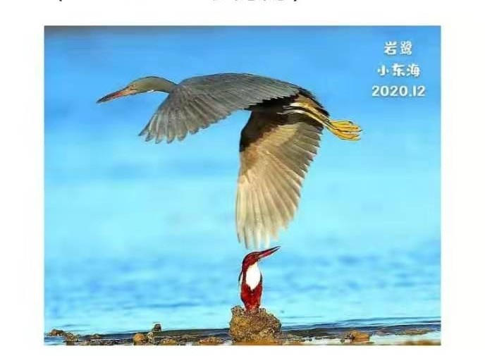 云峰远眺千堆雪,水阔升烟,万里波掀,岩鹭生灵各自欢。 成双暗送秋波语,不惧风寒,振翼长天,传世美图一瞬间。